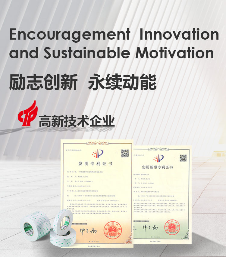 有極佳的粘性、耐溫性好、縱向抗拉橫向能撕,保持力良好,無殘膠